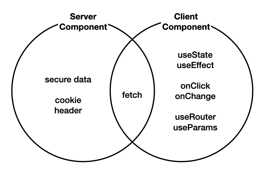 서버 컴포넌트를 안 써봤다면 지금까지 클라이언트 컴포넌트 방식으로 구현해왔을 것이다. 그리고 클라이언트 컴포넌트에서는 useState, useEffect, onClick, onChange와 같은 것들을 사용할 수 있는데 서버 컴포넌트에서 이런 것들을 사용하게 되면 에러가 발생하게 된다.