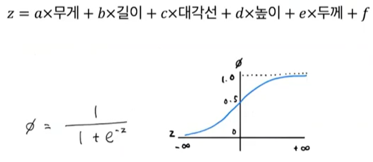 z 값을 그대로 사용하면 회귀 알고리즘이 되므로 확률로 쓰기 위해서는 z 값을 0~1 의 값으로 만들어줘야 함.