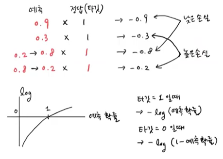 예측 값 = 0.2일 때 -log0.2 = -(log2 - log10) = -log2 + 1 = 0.69897000433 (큰 양수)