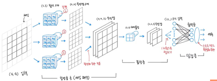 합성곱층, 풀링층이 페어로 여러 개 존재할 수도 있음.