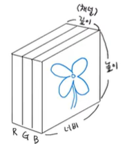 이미지에 너비와 높이 외에 길이(채널) 존재함.