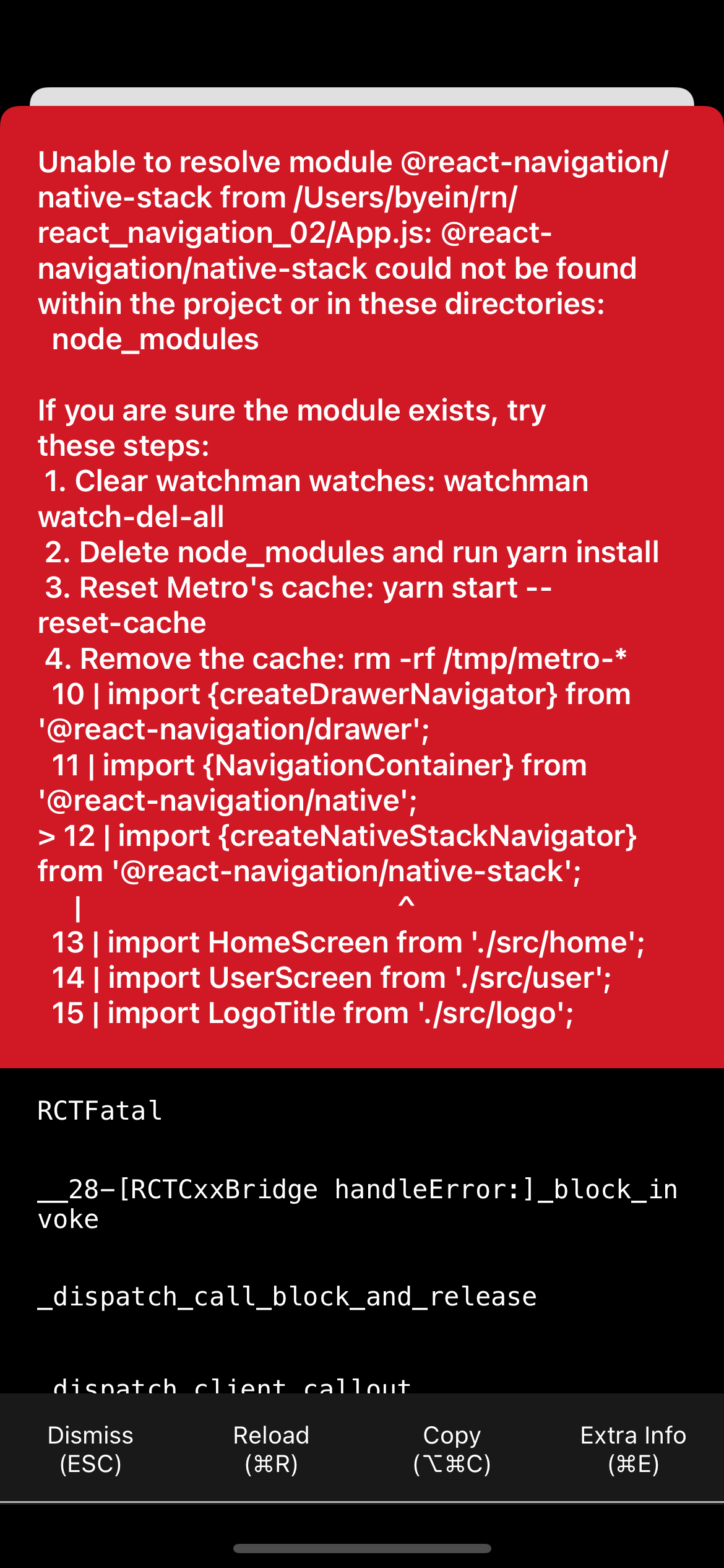 4. react-navigation/drawer-navigator 처음 설치 및 실행 시 발생 에러